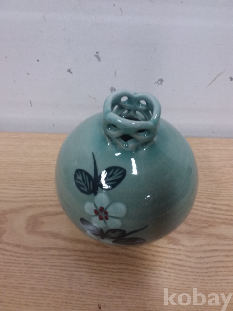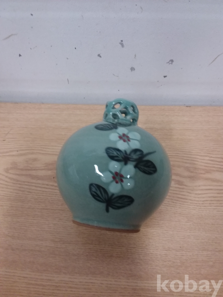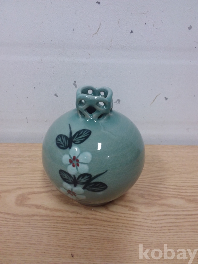 꽃과 잎사이의 모양이 아주 섬세하며 빙열이 아주 이뿐 도자기 화병입니다