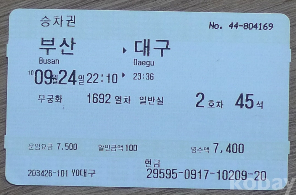 한국전기안전공사 광고 부산 - 대구 무궁화호 승차권