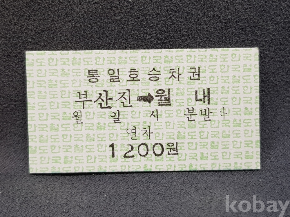 - 미사용 통일호 승차권 " 부산진 ▶ 월내 " 1200원