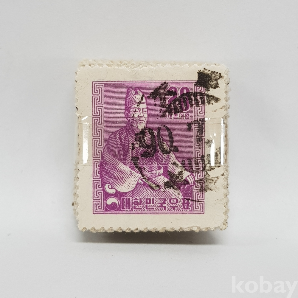 - 1950년대 환화 20환 세종대왕 일부인 미확인 사용제 우표 약 100매 묶음
