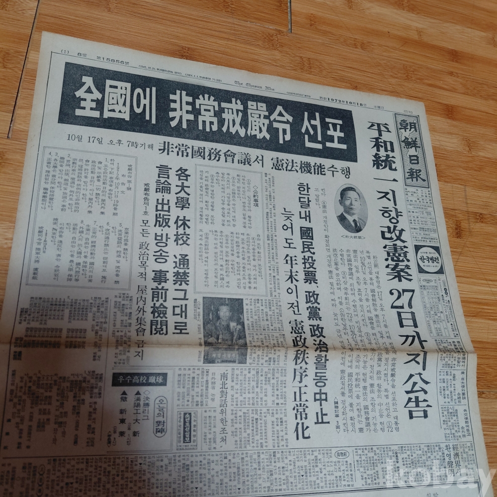 전국에 비상계엄령선포 조선일보 72년10월13일 정치면 메인기사 올려드립니다