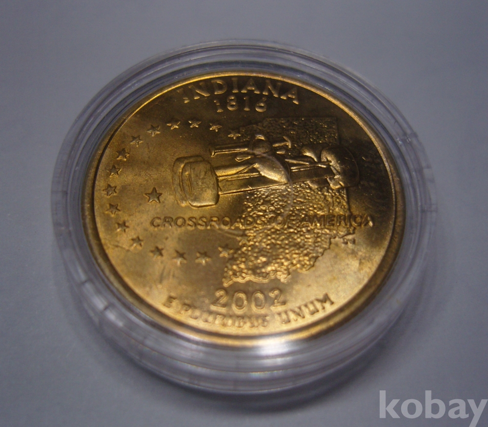 희귀한 미국 쿼러 25센트 2002년 인디애나주 기념주화 24 KGP 금도금 (Mint)