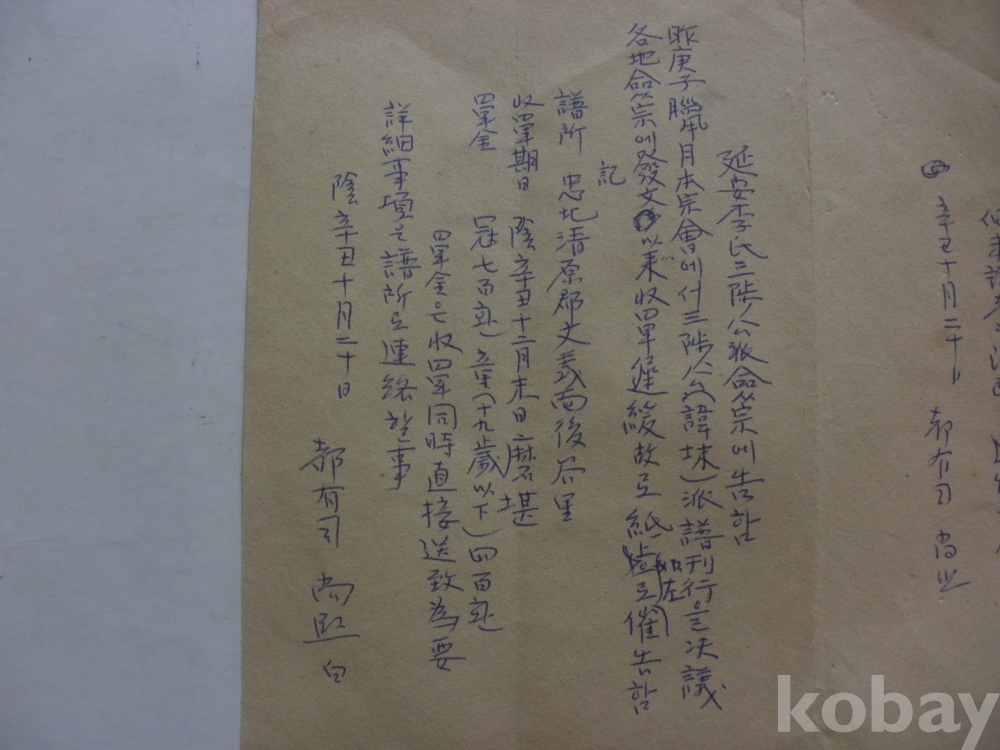 연안 이씨 삼보공파 - 파보간행 안내문 (신축년)