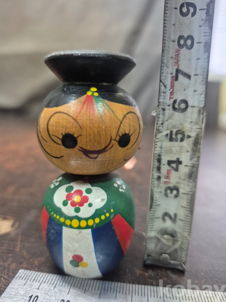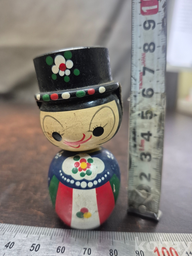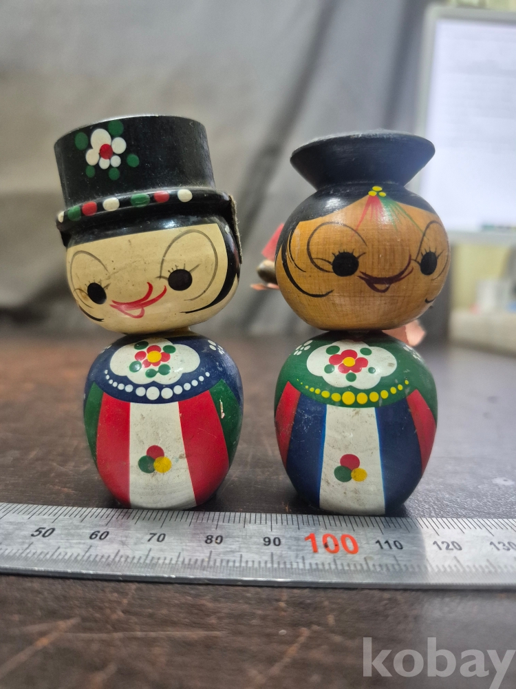 1970년대 한국 전통 신랑신부 목각 인형 목과 몸통 사이가 스프링으로 연결 되어 있어요 3.5*3.5*8
