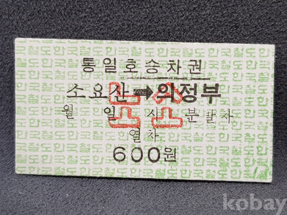 - 미사용 통일호 승차권 노소 " 소요산 ▶ 의정부 " 600원