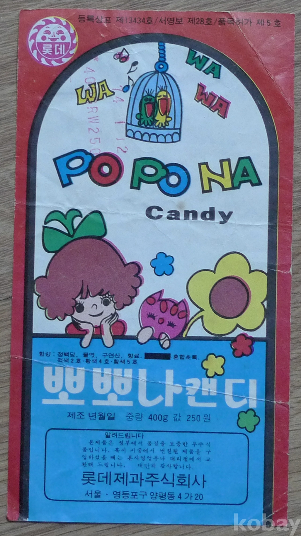 1974년 롯데제과 뽀뽀나 캔디 상표텍