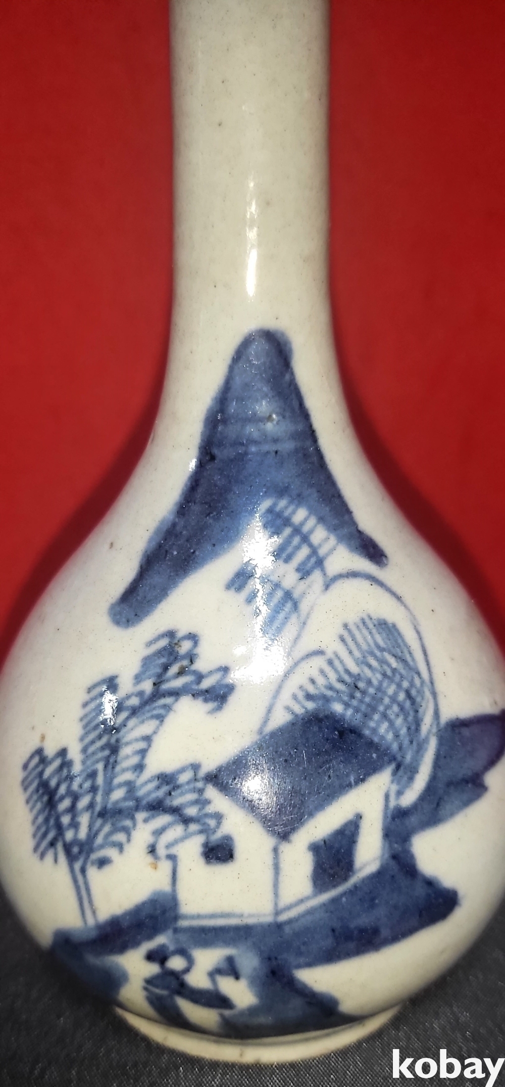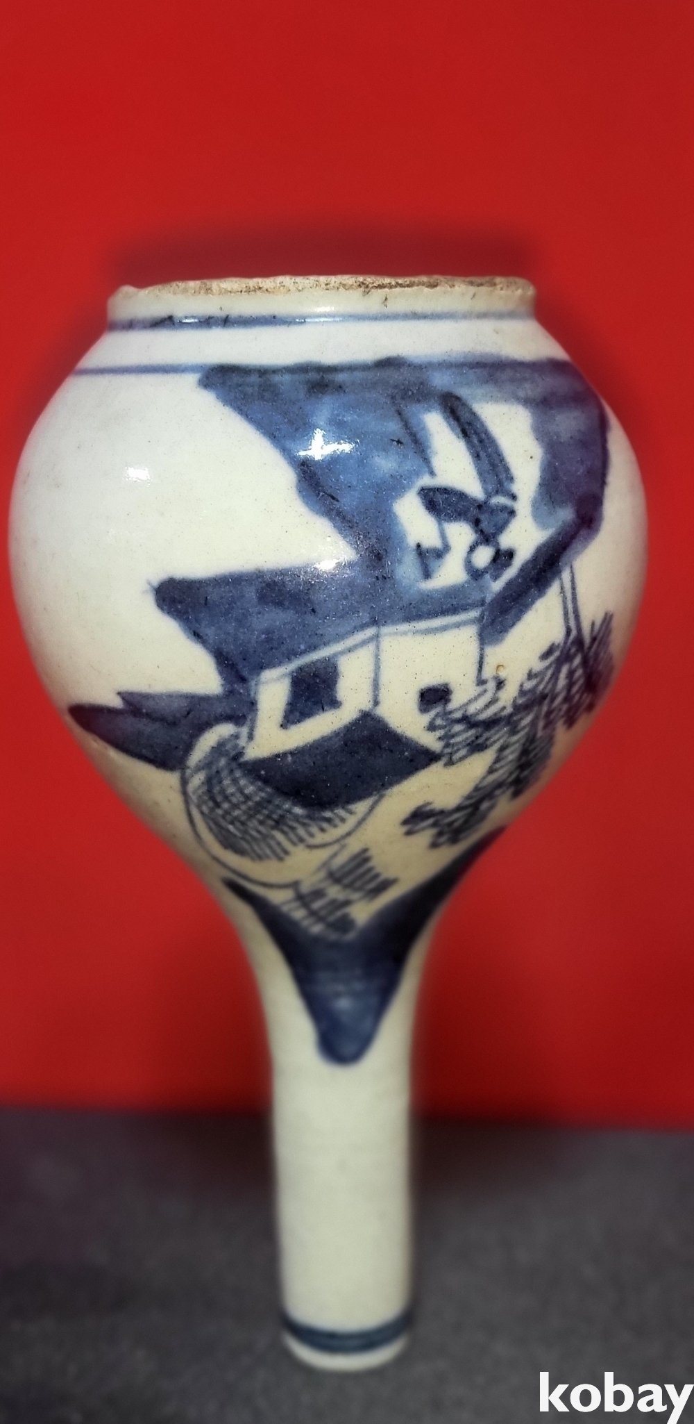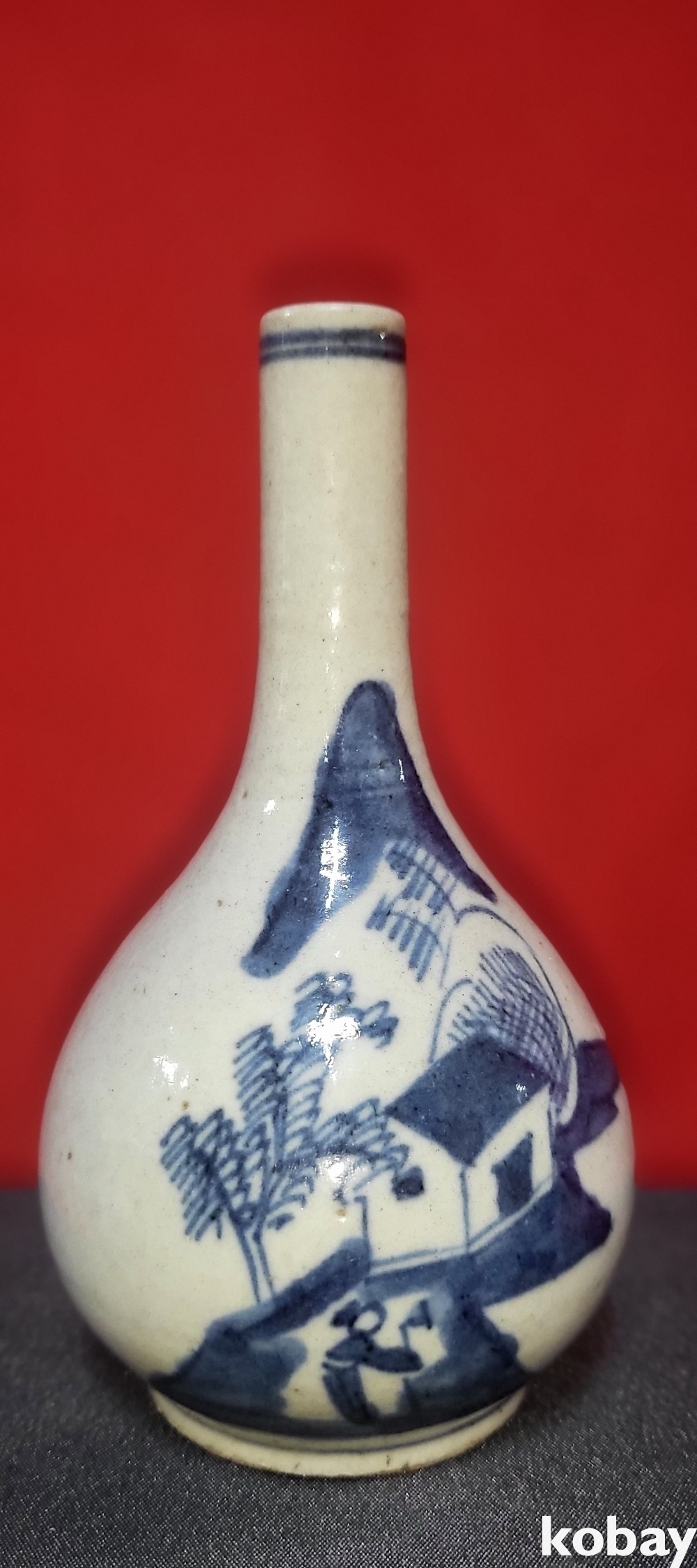 명말 청초 시대 청화백자 산수 인물문양 병입니다,