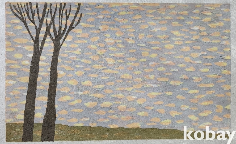 작가 수결과 에디션 넘버가 없는 두터운 한지에 판화입니다,