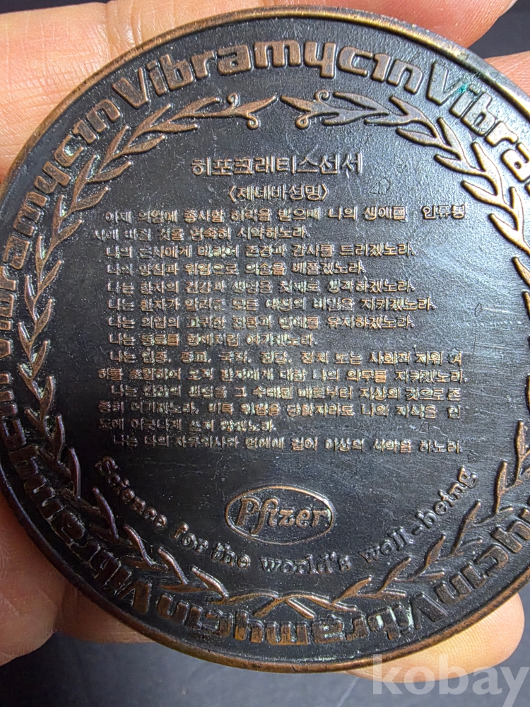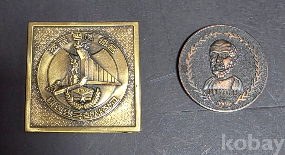 동 재질의 대한민국 학사장교 패와 히포크라테스 메달입니다