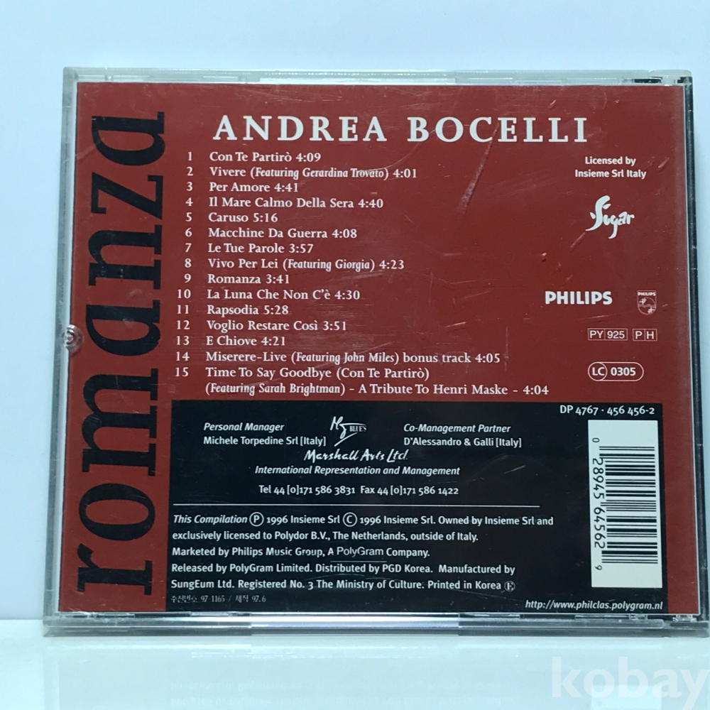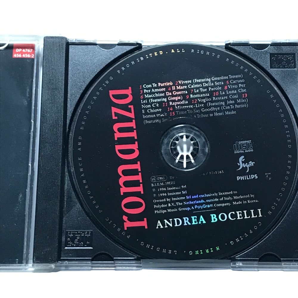 CD 10,600-62 Andrea Bocelli - Romanza 자켓 : 실사 디스크 : 사용품 깨끗 96 년 제작