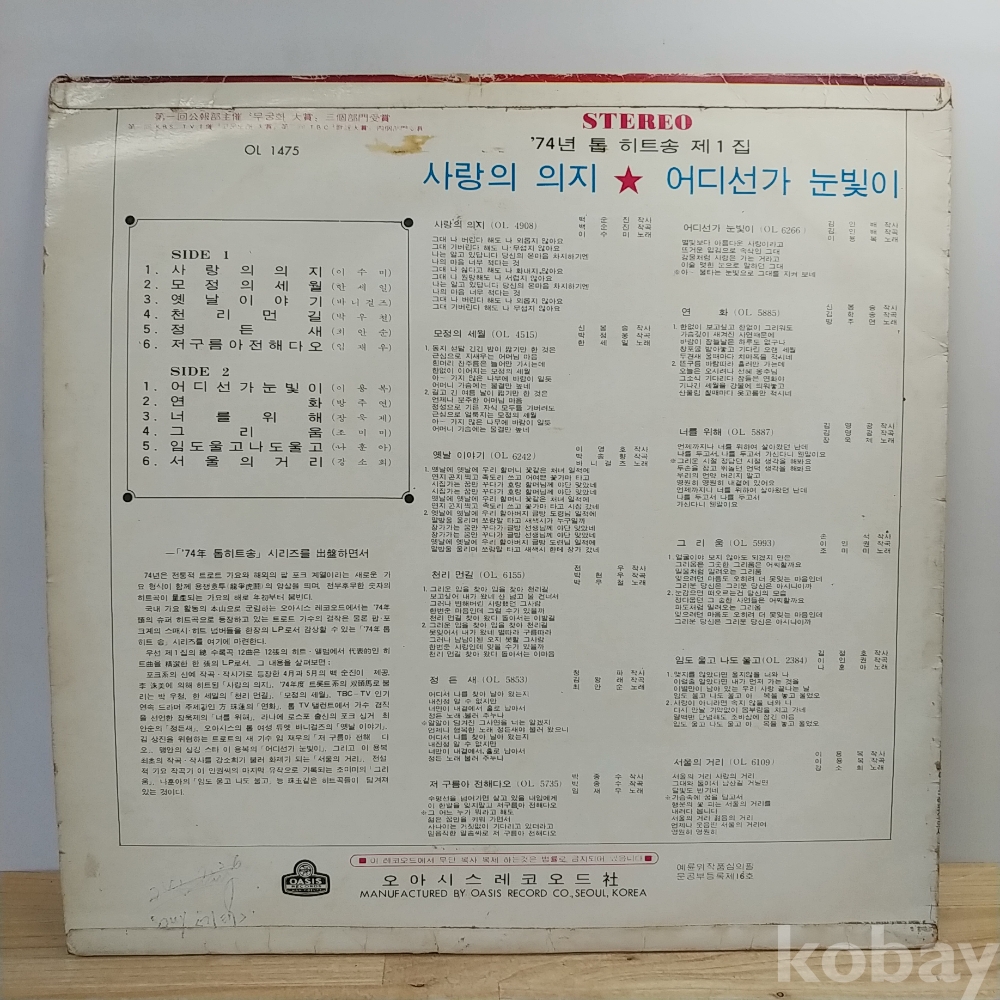 오아시스 74년 촙히트송 제1집