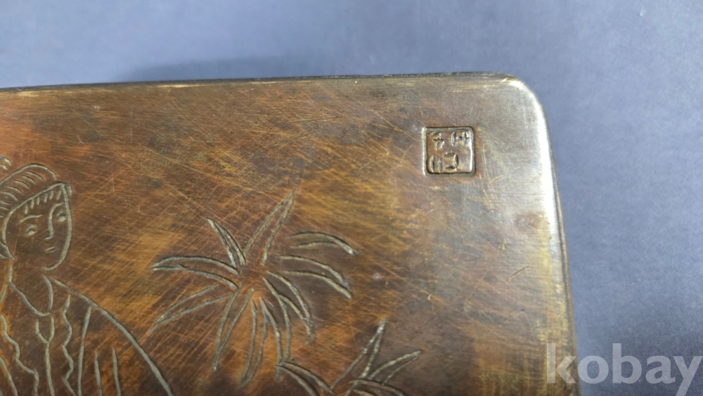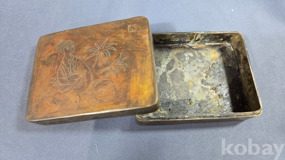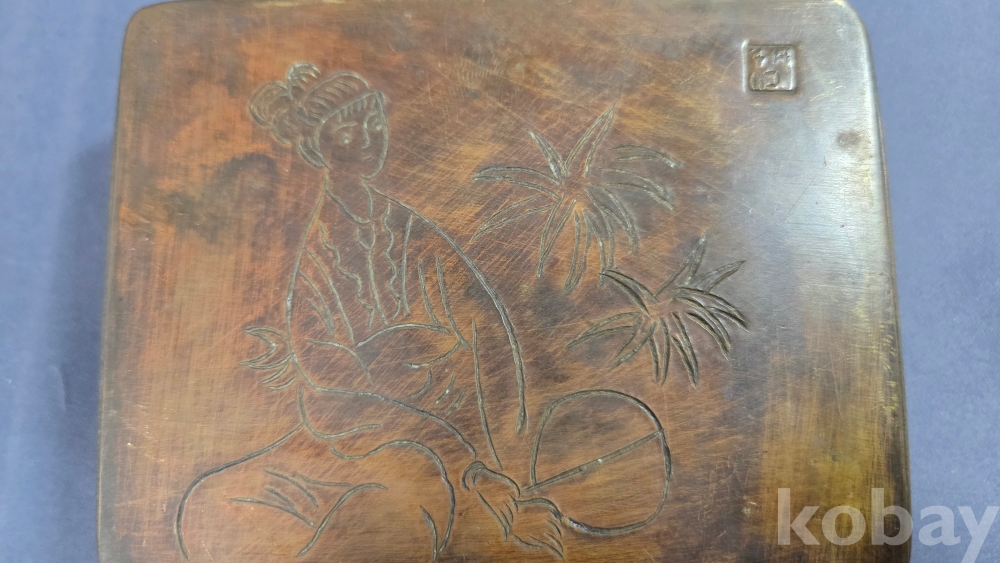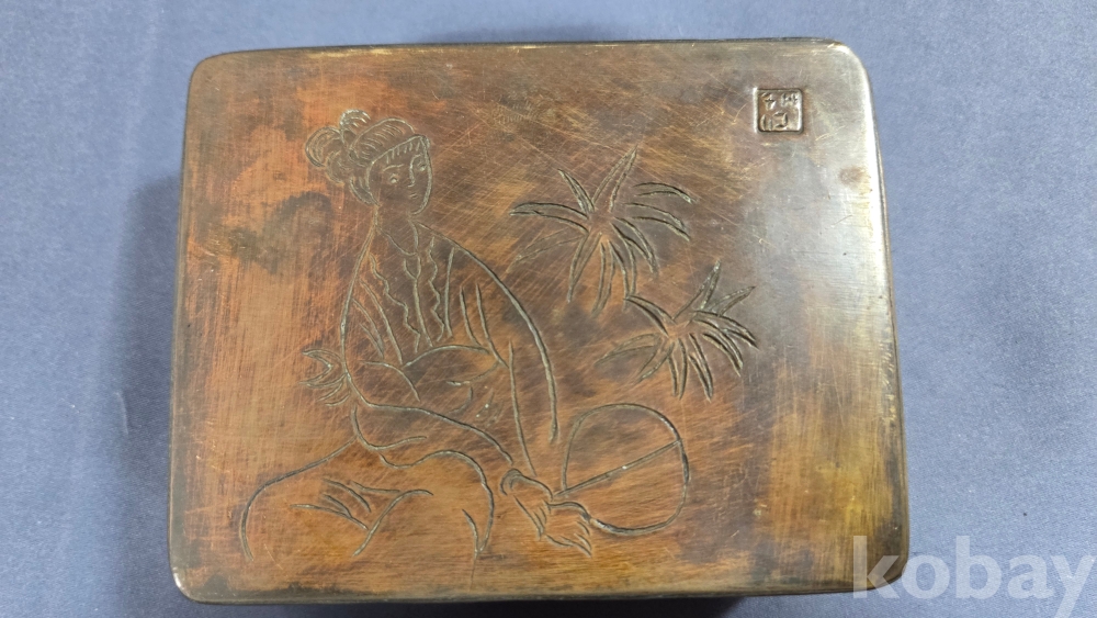 미인도 문양이 새겨져있는 동 먹물통으로 보여집니다.
