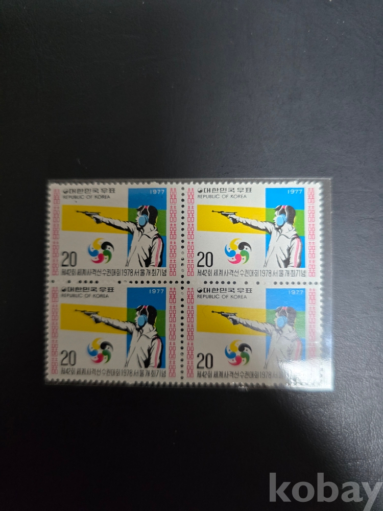 미 사용 우표 4B/L 77'12.3 제42회 사격선수권대회 권총사격