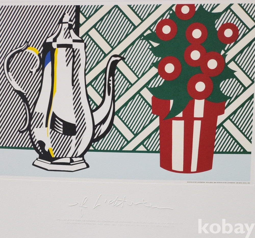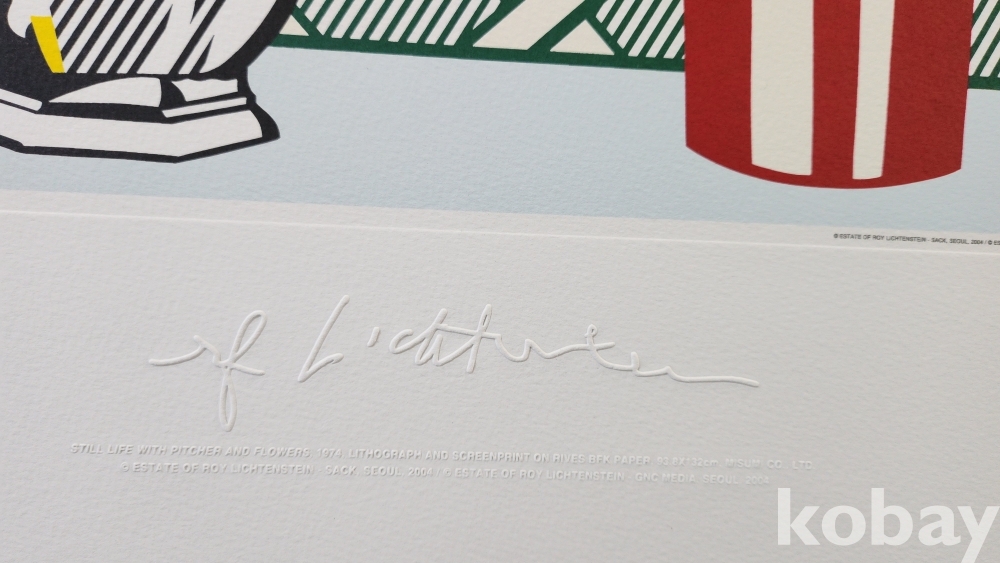 로이 리히텐슈타인 " 주전자와 꽃이 있는 정물" 1974년 作 특수 압인 판화입니다,