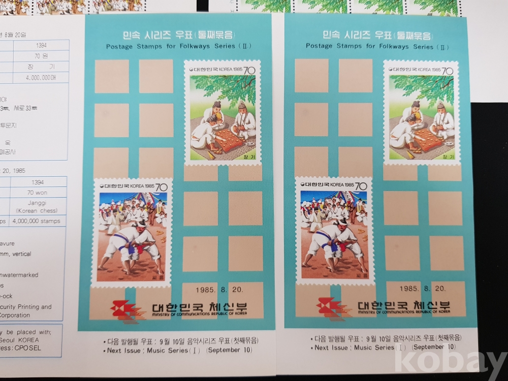 - 1985년 민속 시리즈 제 2집 전지, 시트, 안내카드 등