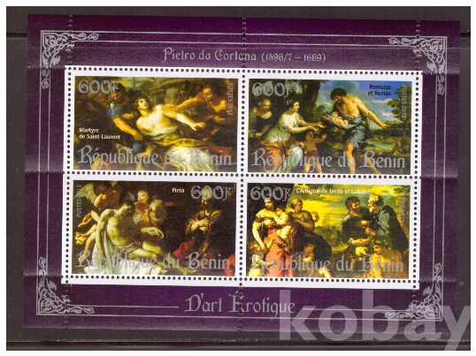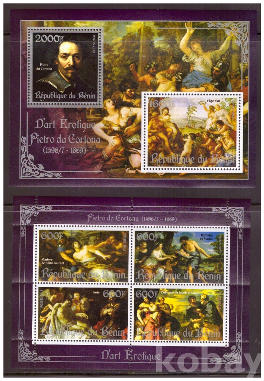 (누드명화) 베냉 2013 피에트로 다 코르토나 누드화 2 s/s(silver) MNH