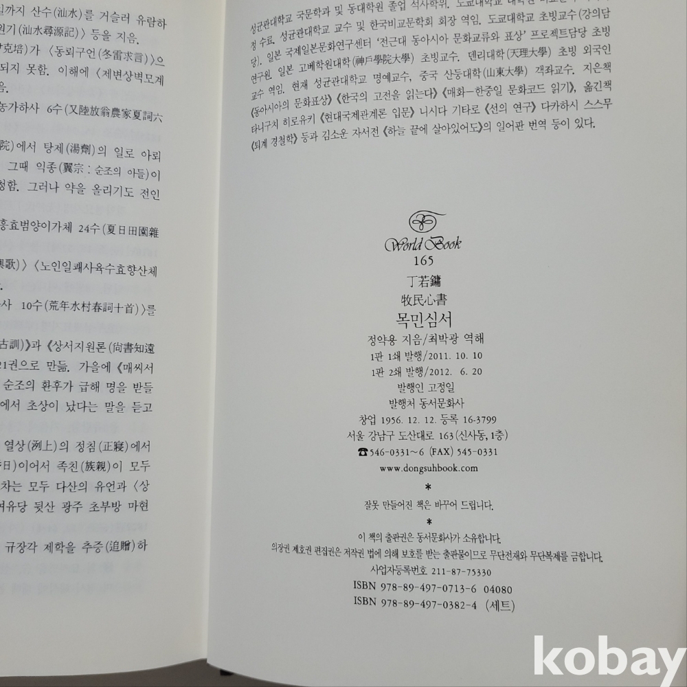 [좋은책] 정약용 목민심서 (동서문화사 월드북 165) ; 중상급/시201