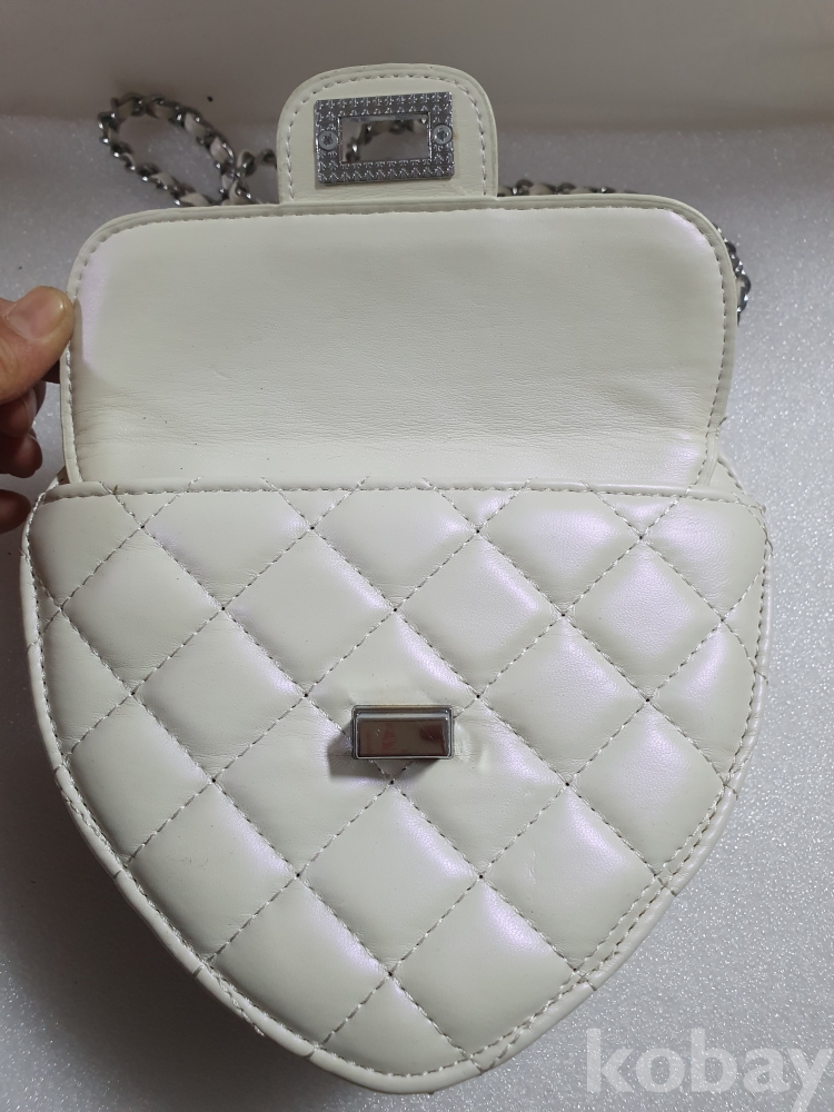 {천원경매} 2-1823 흰색 하트 크로스백 (17*16*7)
