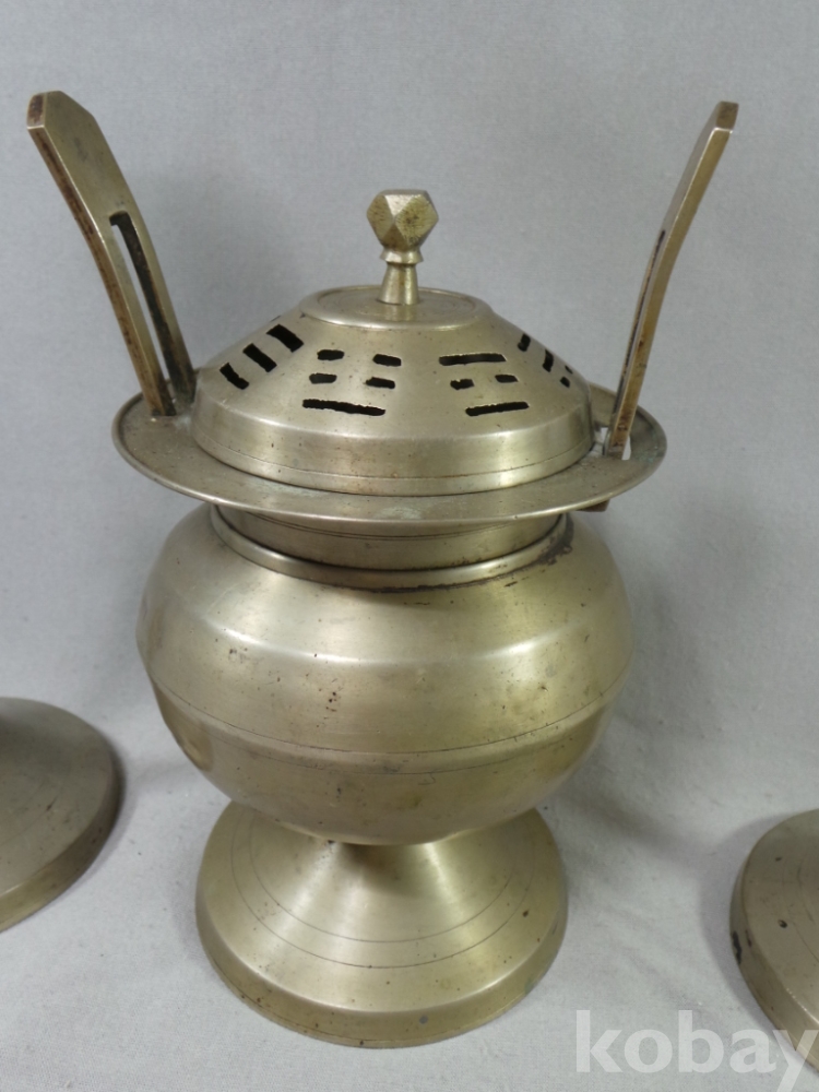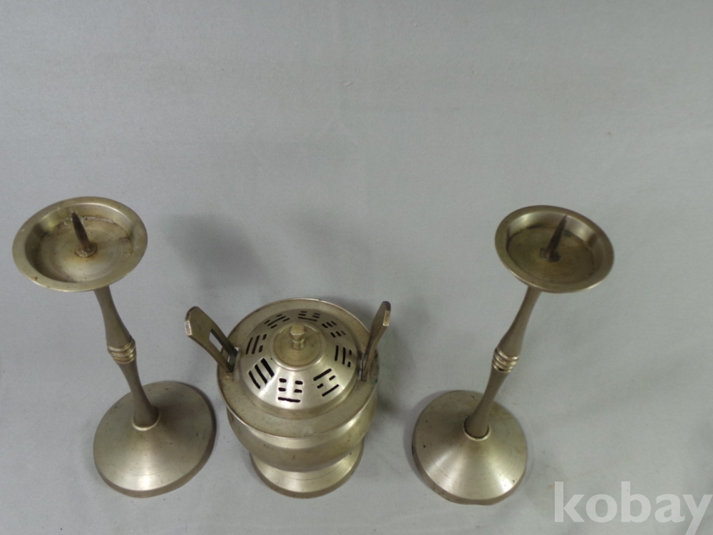 구하기 어려운 백동 촛대와 백동 향로입니다.