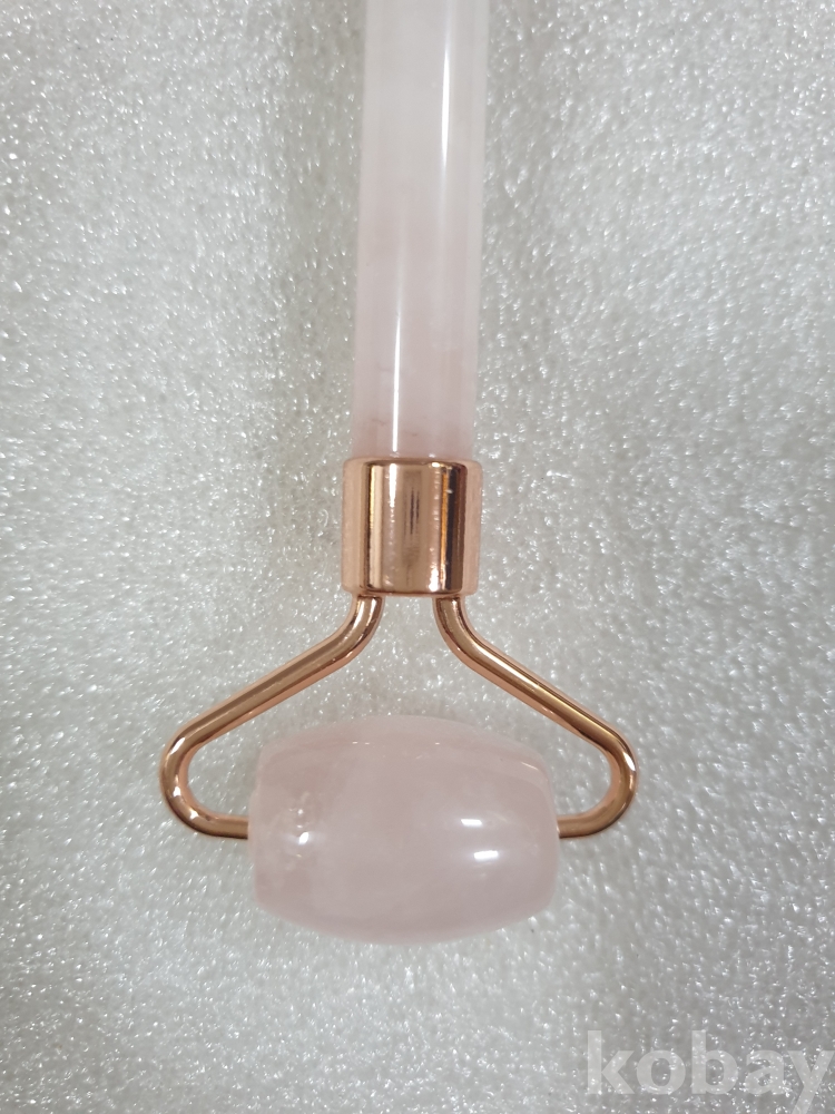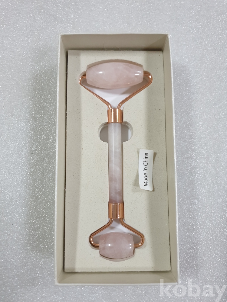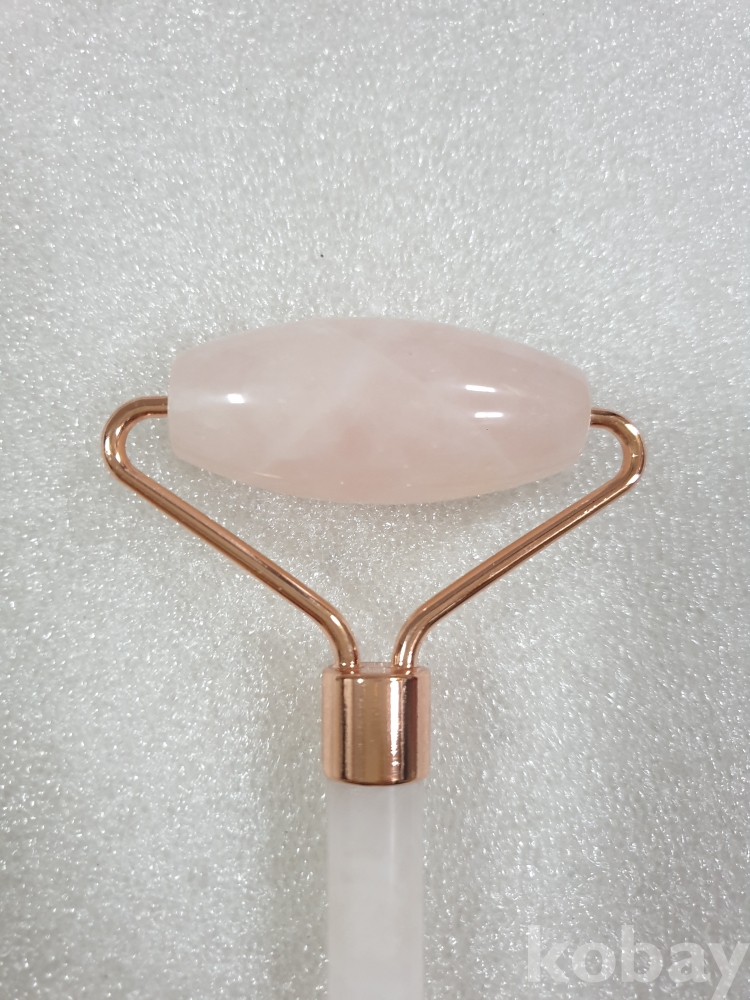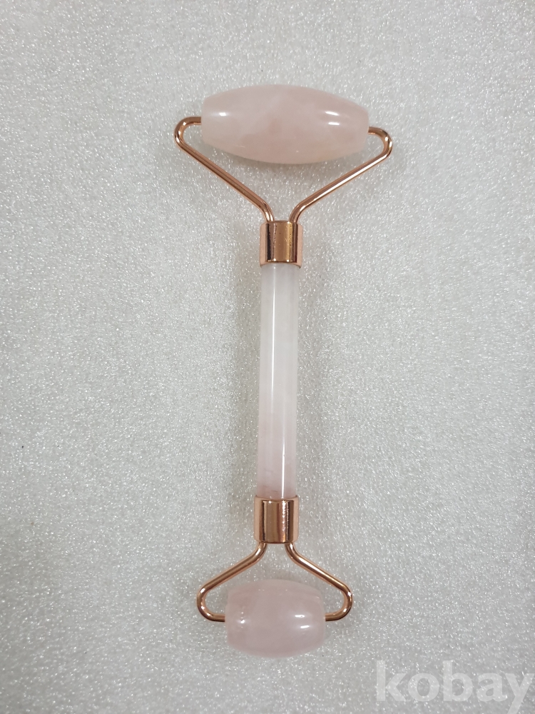 {천원경매}2-0527 로즈 쿼츠 페이스 롤러 천연광석 괄사 마사지기 (케이스 파손)