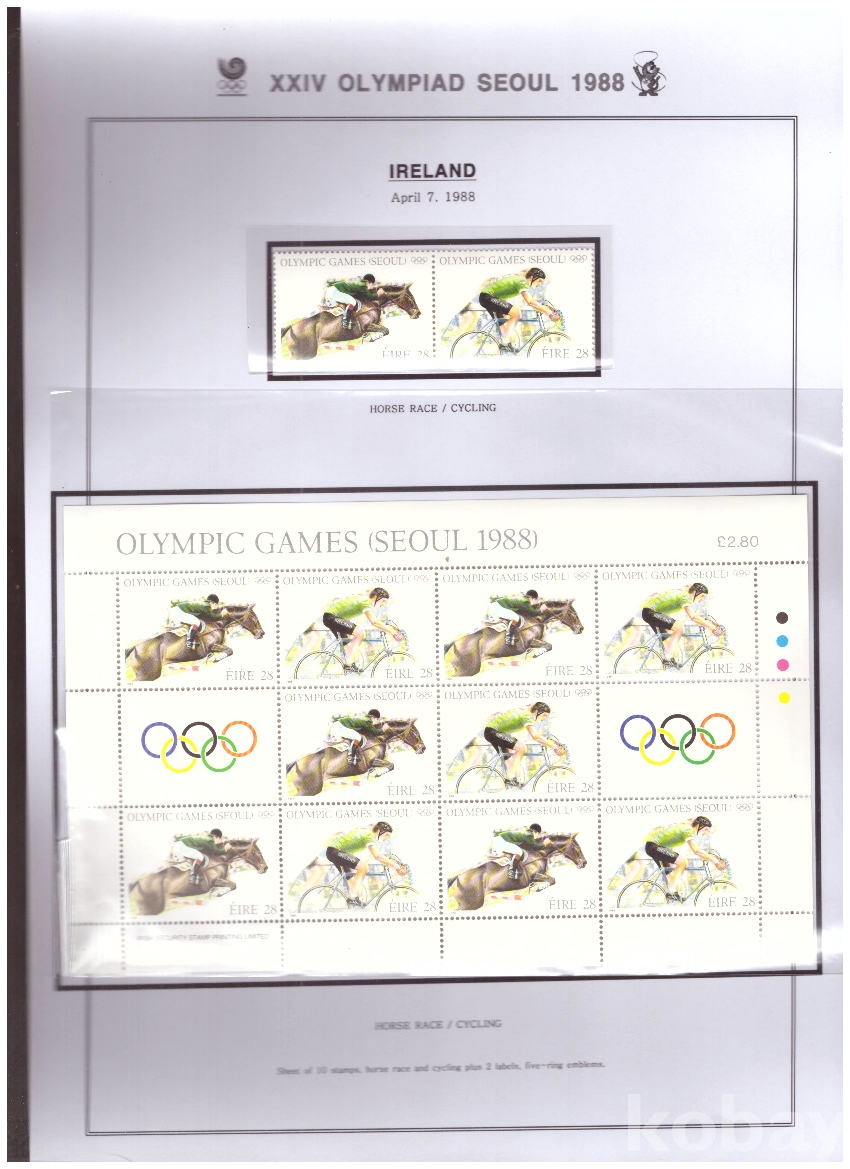 (서울올림픽) Ireland(아일랜드) 1988.4.7 승마외 pair+sheet of 10+2 labels MNH