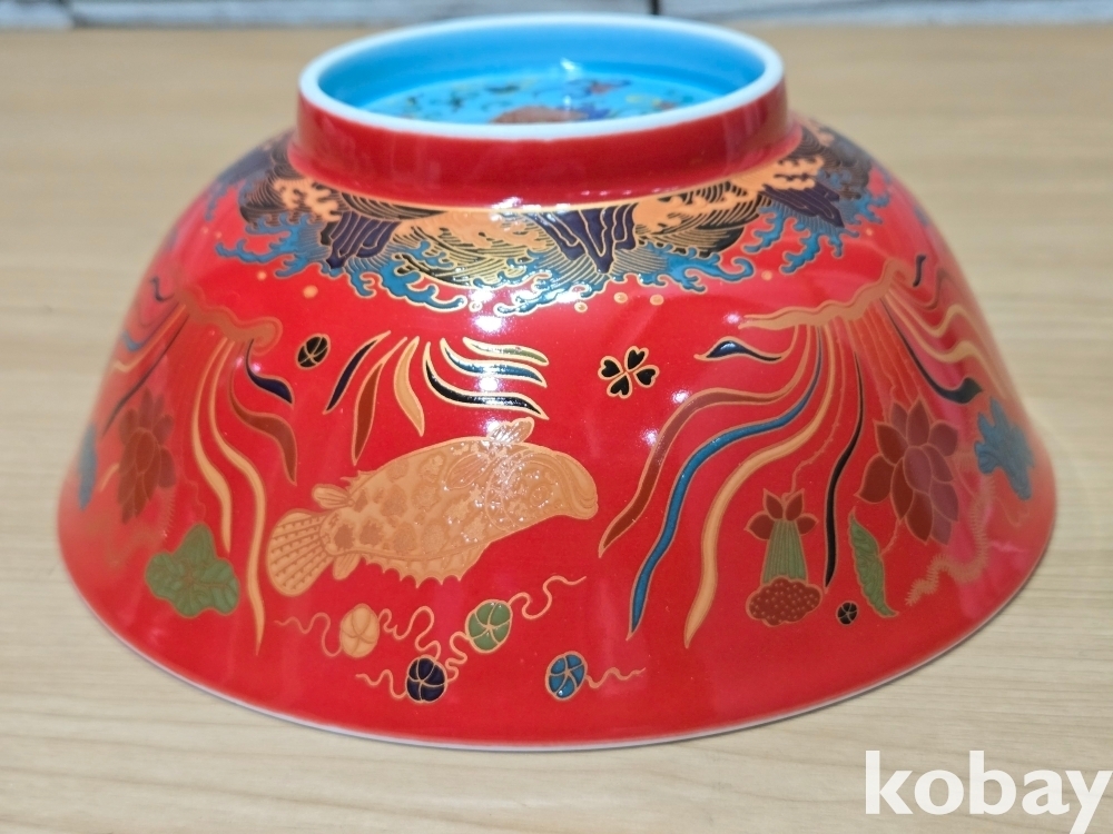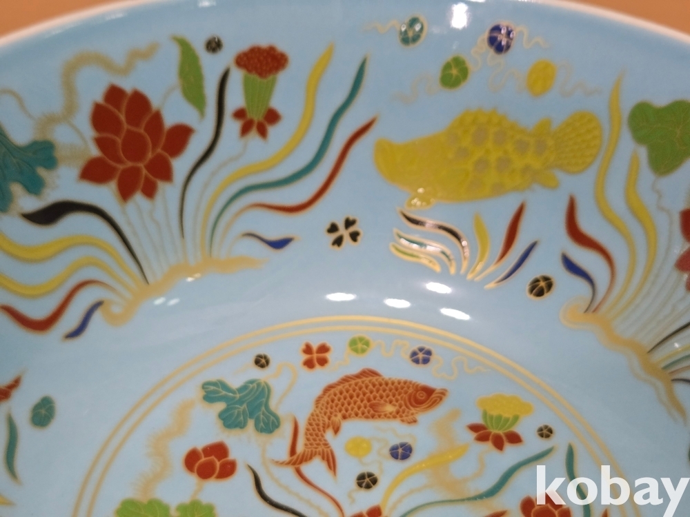 물속을 화려하게 표현한 다완 도자기 입니다.