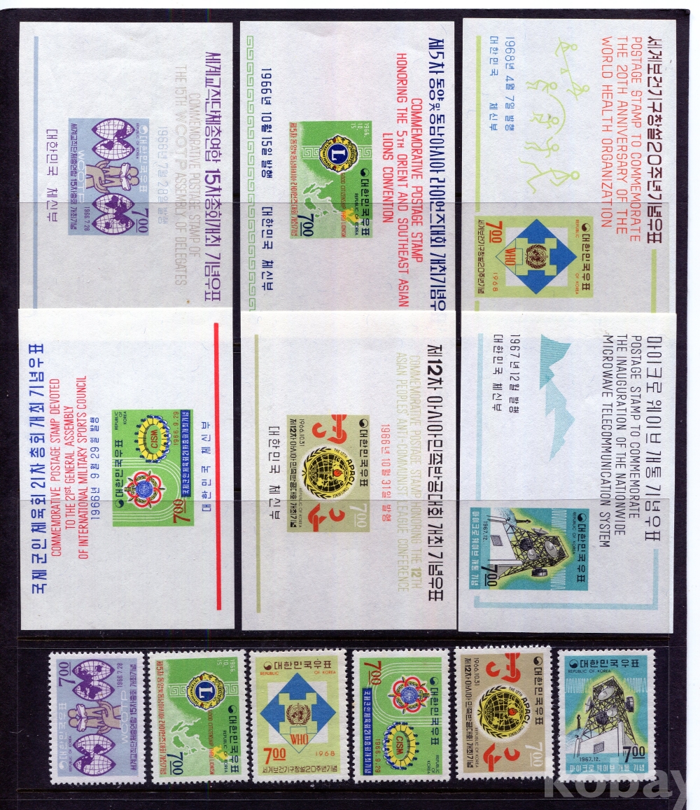 - [시트/우표] 1960년대 후반 기념시트 및 우표 6종 모음 1 ( MNH : Mint Not Hinged,뒷면 힌지자국없는 깨끗한 상태)