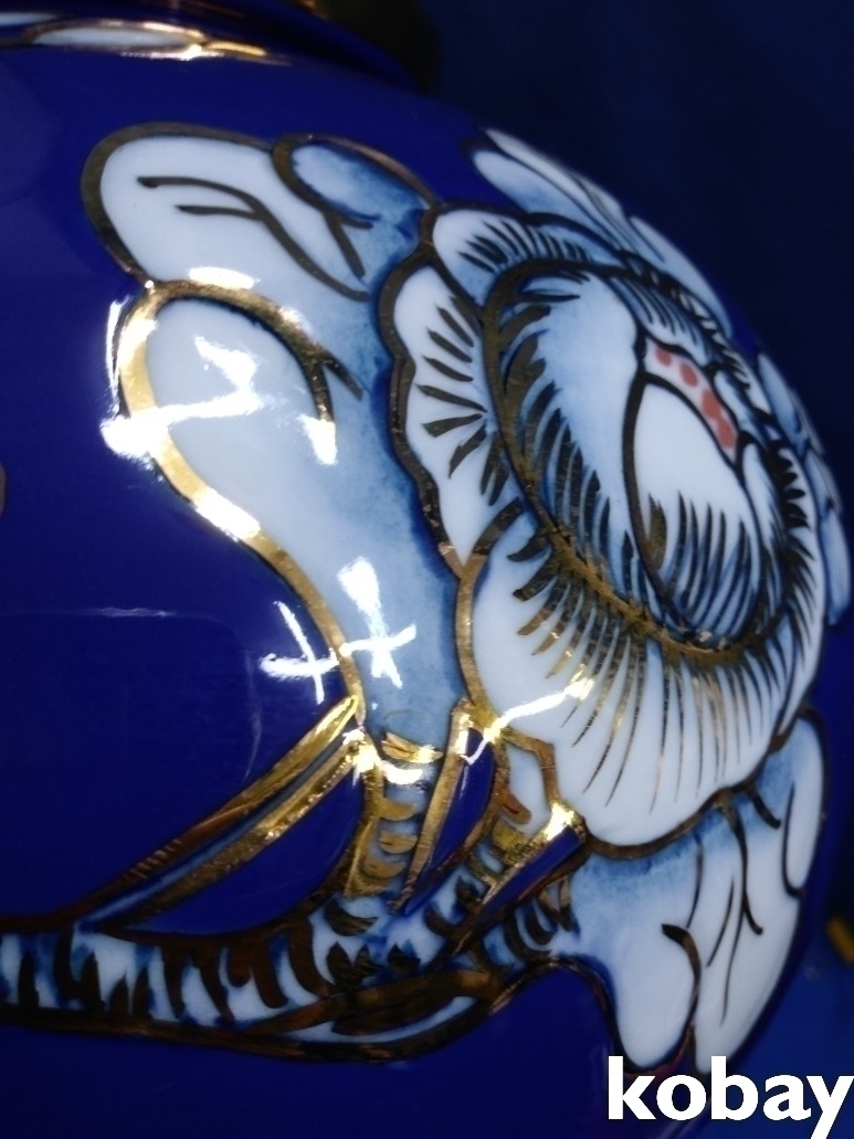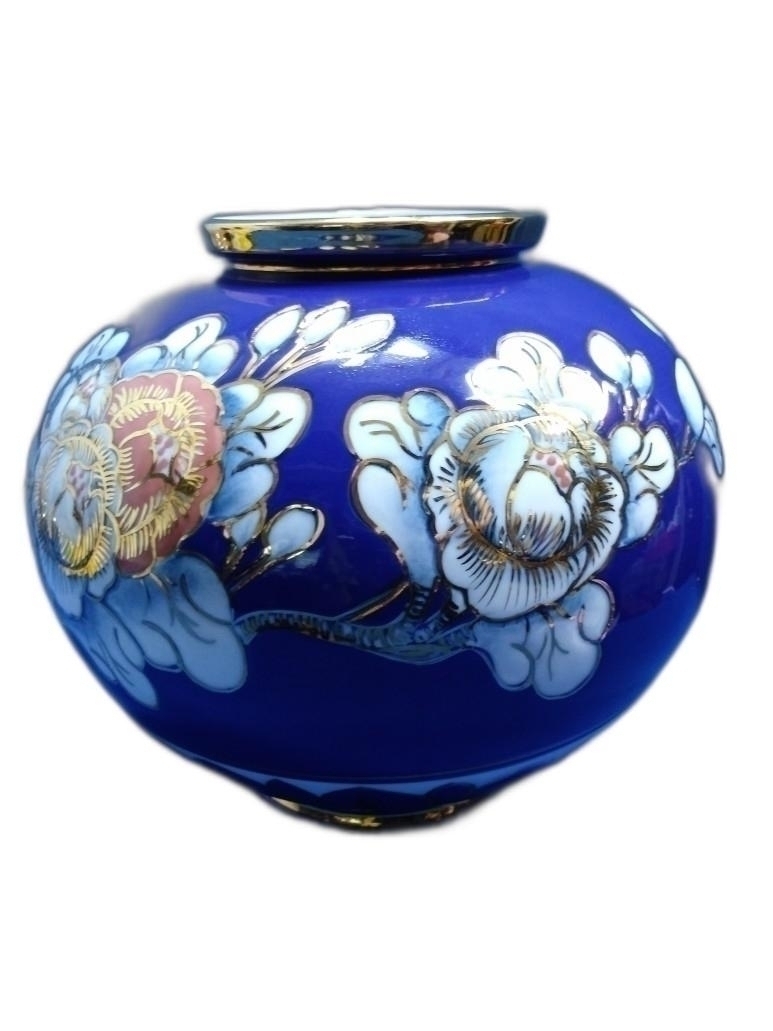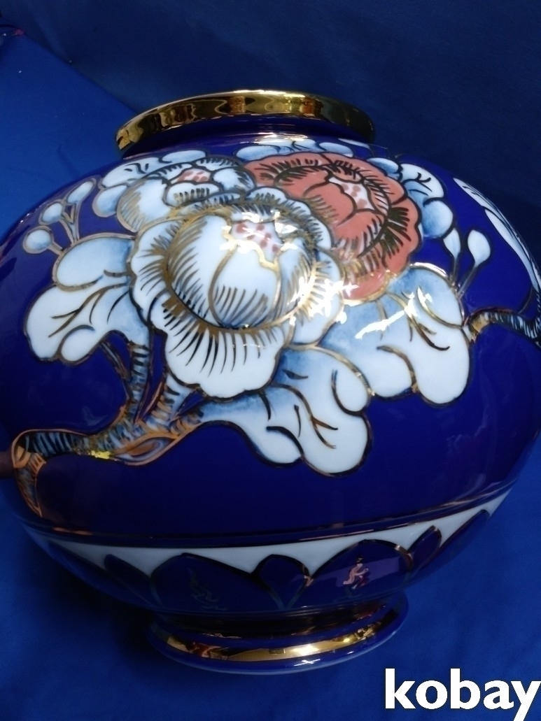 금장으로 꽃 문양과 도자기 테두리를 표현한 도자기 입니다.