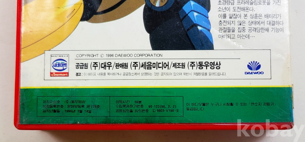 물 품 명 | 만화영화 / 프라사이버 대장군 제1탄(1,2) 총2편 / 1996년 / 대우 |