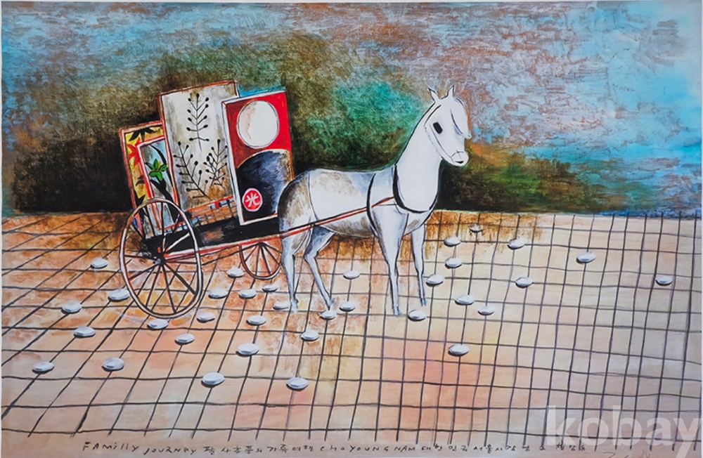 본 작품은 조영남 작가의 팔순을 기념해 제작한 판화 작품으로, 말과 마차를 모티프로 한 ‘Family Journey(가족여행)’ 연작 중 한 점입니다.