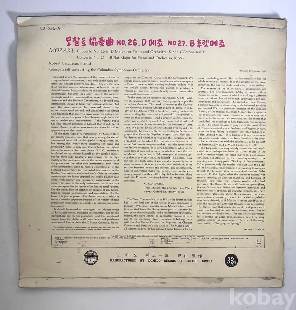 MOZQART CASADESUS SZELL의 LP판입니다.