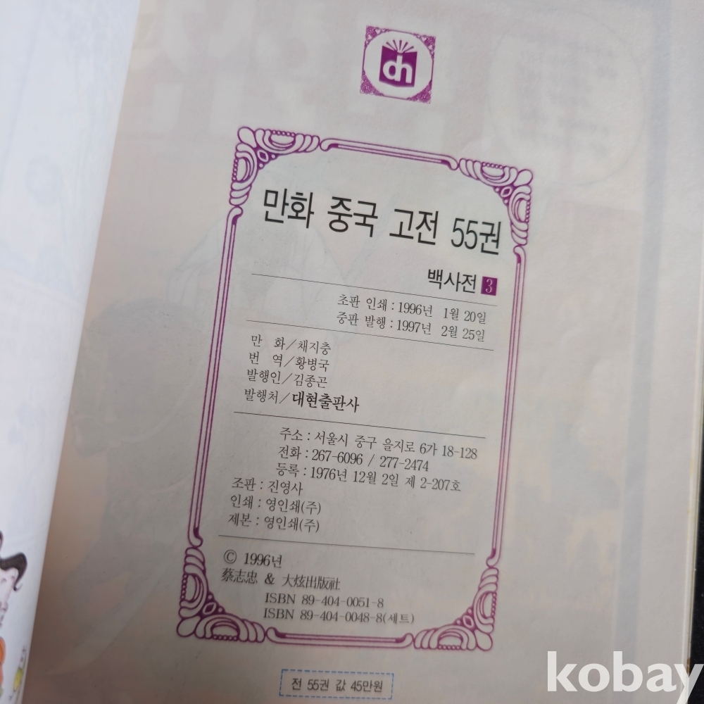 1997년 대현출판사에서 발행한 만화로 배우는 중국고전입니다