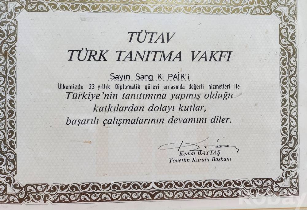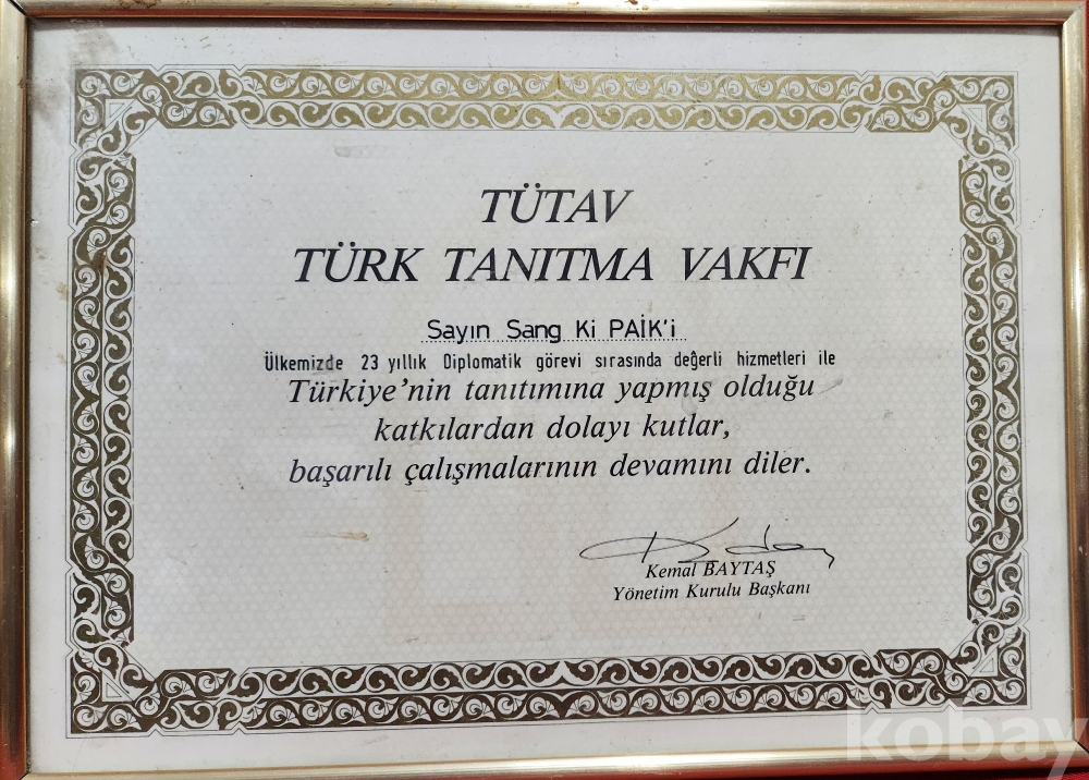 1989년 터키 홍보 재단에서 한국인 백상기님께 23년동안 터키 외교와 공로에 감사하는 표창장입니다,