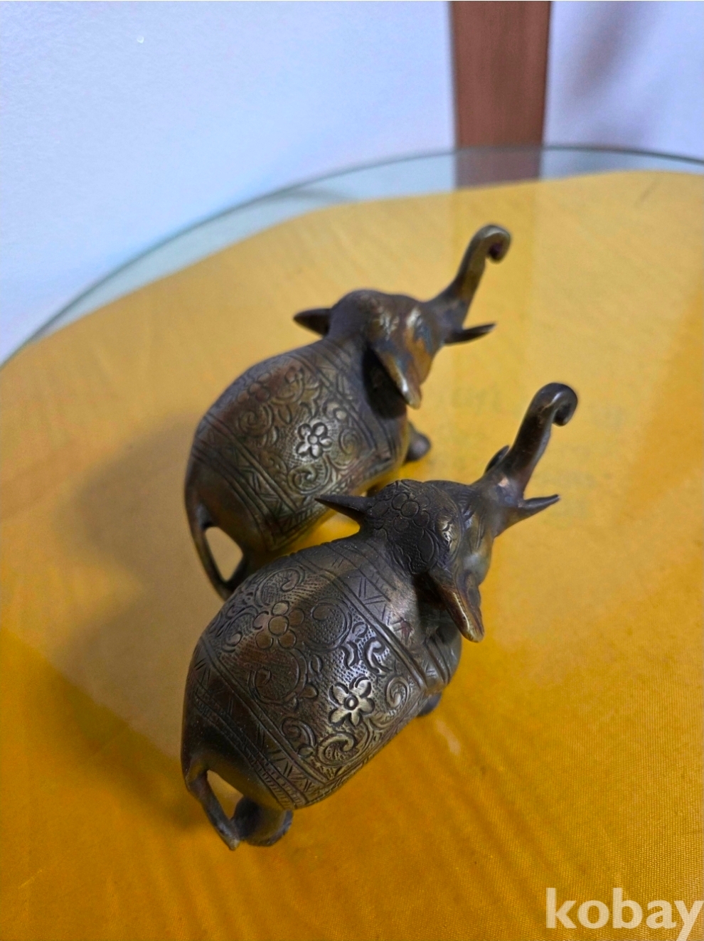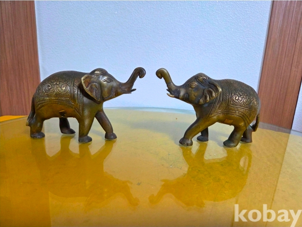 황동 코끼리 한쌍 몸에 음각 문양이 좋습니다ㆍ길이14 높이8