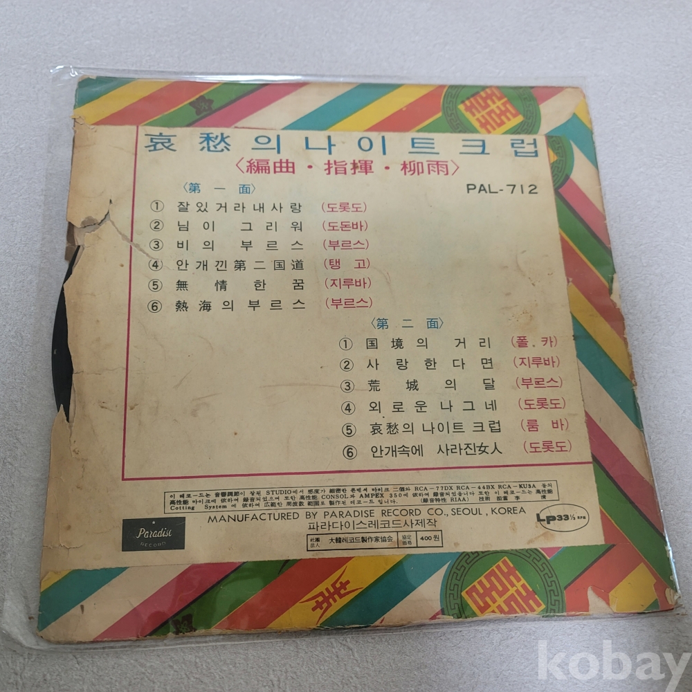 EX : 약간의 마모, 모서리 찢김 존재 음반상태