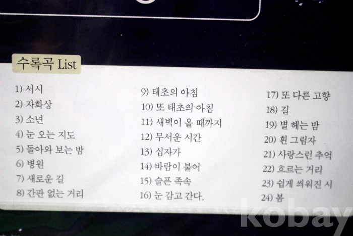 수록 곡 목은 사진을 참조하시기 바랍니다