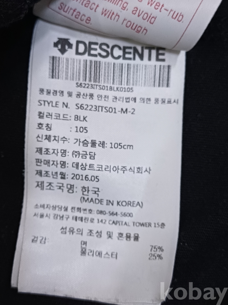 | 물품 크기 | 가슴단면49 총장67 |