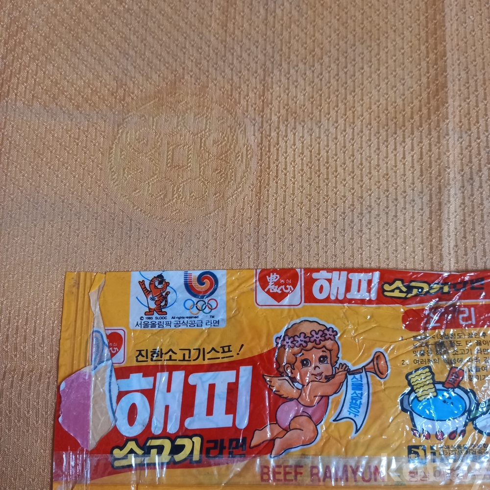 호돌이 표시있는 "해피 소고기라면 봉투"