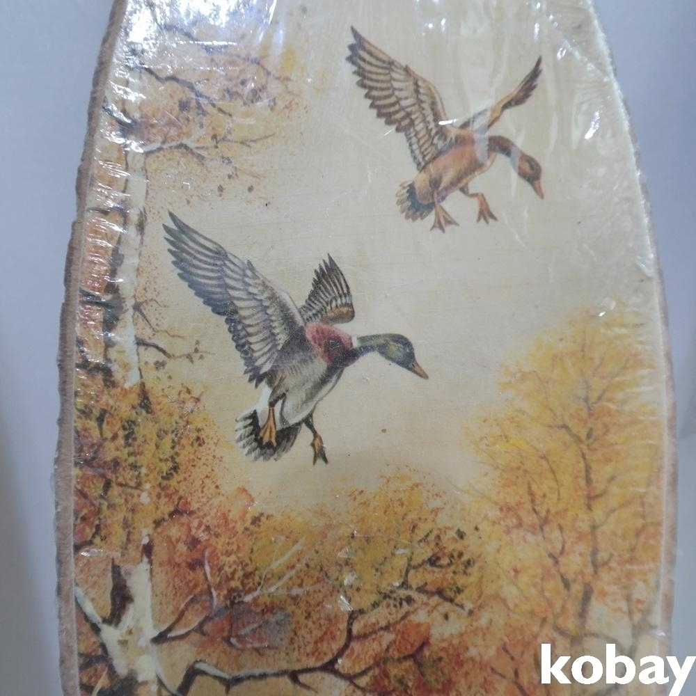 통나무 판위에 새그림이 전사되어져있는 오래된 소품 2점 입니다.