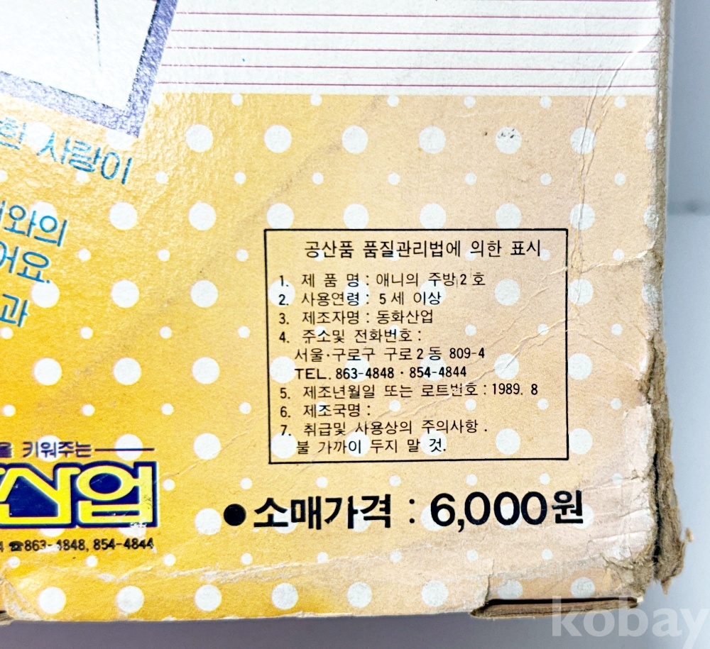 제조사 | 동화산업 | 상태 | 박스 : 좌측 상단 부분 찢김, 뒷면 우측 하단 찢어짐 상세 상태 사진 참고 |