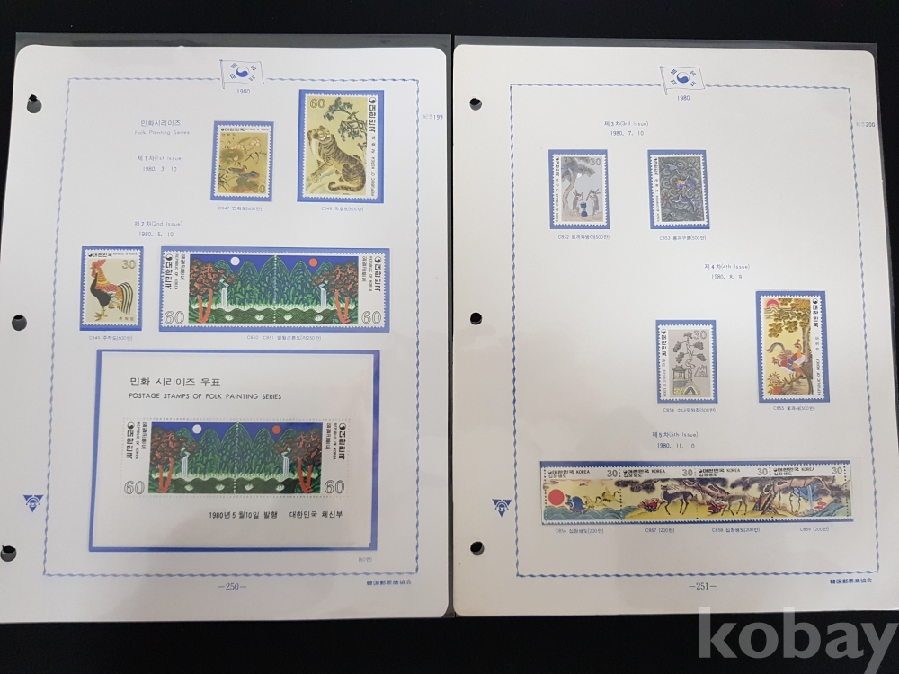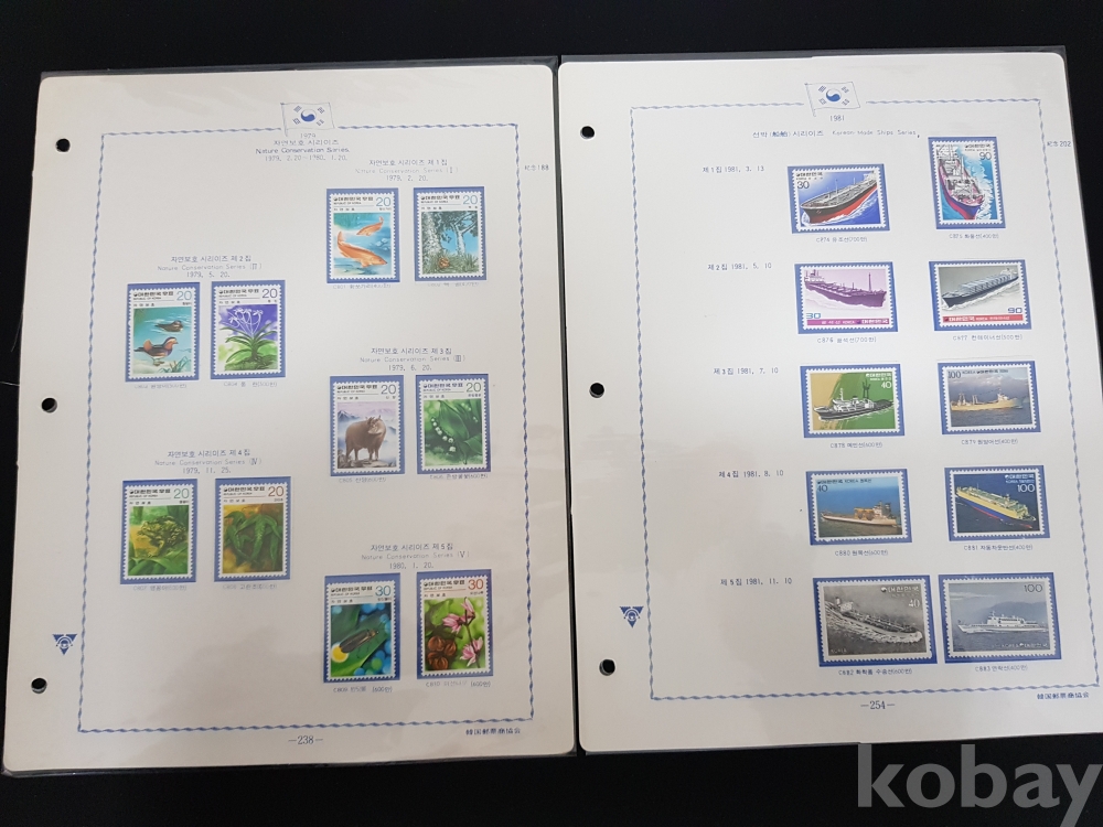 - 1970년대 자연보호시리즈, 민화시리즈, 선박시리즈 기념우표 모음 / 앨범해체분