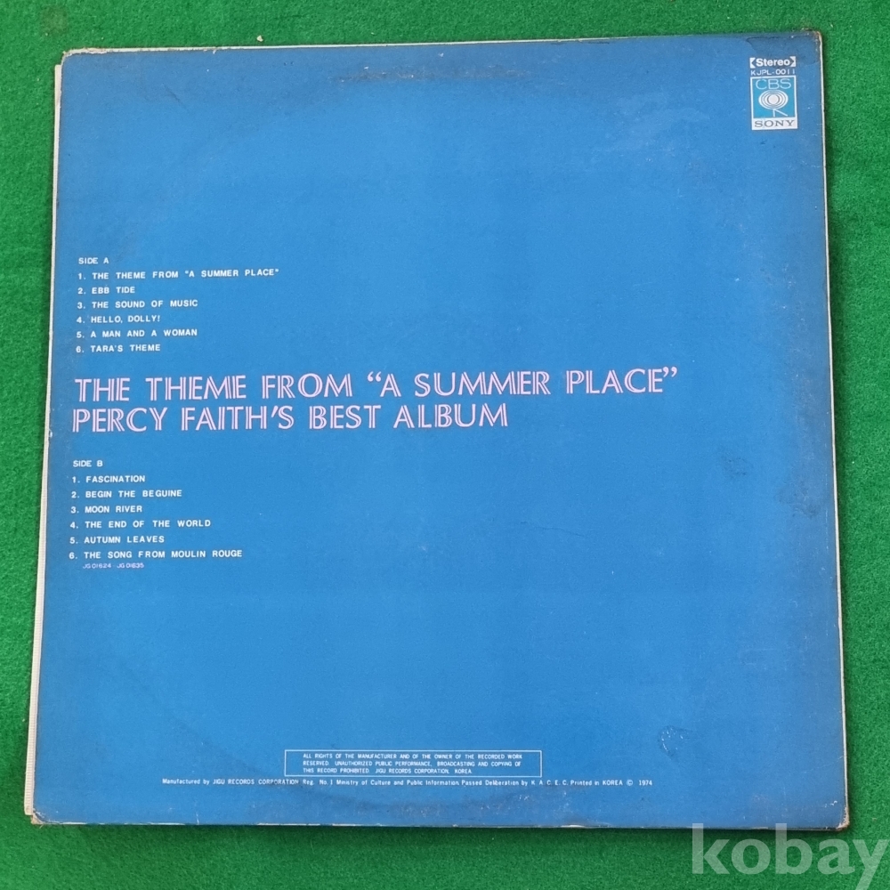 (LP판)퍼시 페이스(Best Album)The Theme from "A Summer Place".