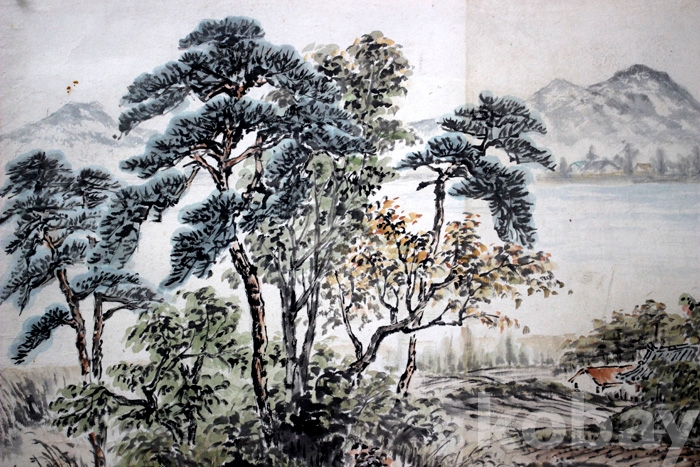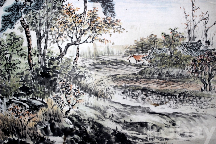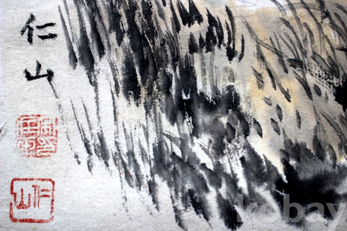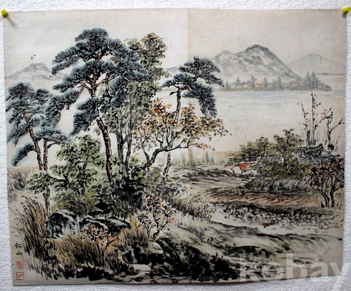 仁山(인산) 송재옥의 추경산수 - 기와집이 있는 강가의 가을 풍경
