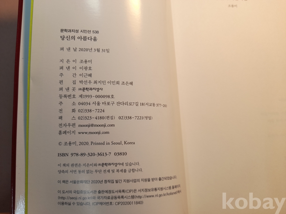 문락과 지성 시인선 * 조용미 시집 당신의 아름다움