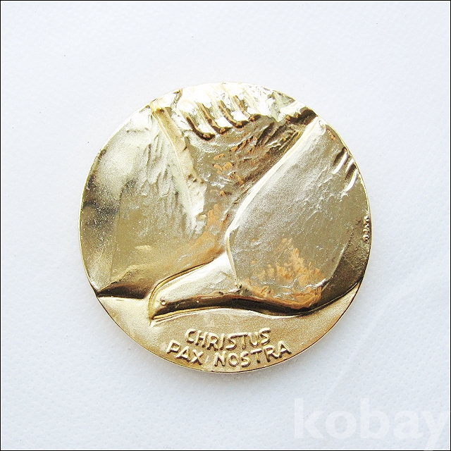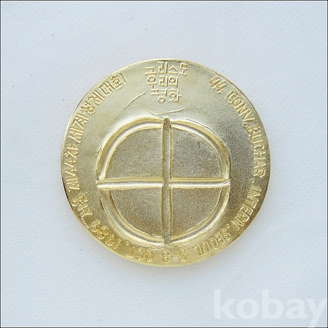 지름 : 약 57mm 1989년 제44차 세계성체대회 기념품은 여러종류가 만들어졌는데 그 중 은메달은 많이 보이고 동메달은 드물게 보이는 편입니다. 금색 메달은 20여년 발품하면서 처음 구한 메달입니다. 종교관련 수집품으로 좋은 자료가 될 것 같습니다.