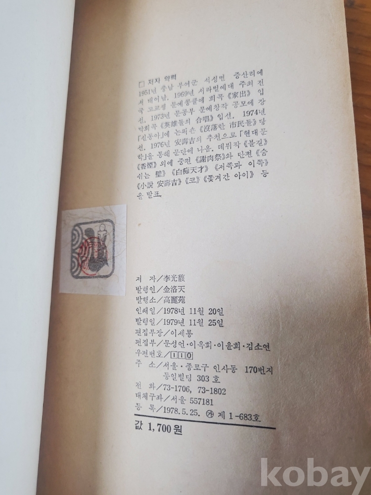 1. 풍랑의 도시, 이광복, 도서출판 고려원, 1979년, 258쪽, 상태 상, 사진 참조