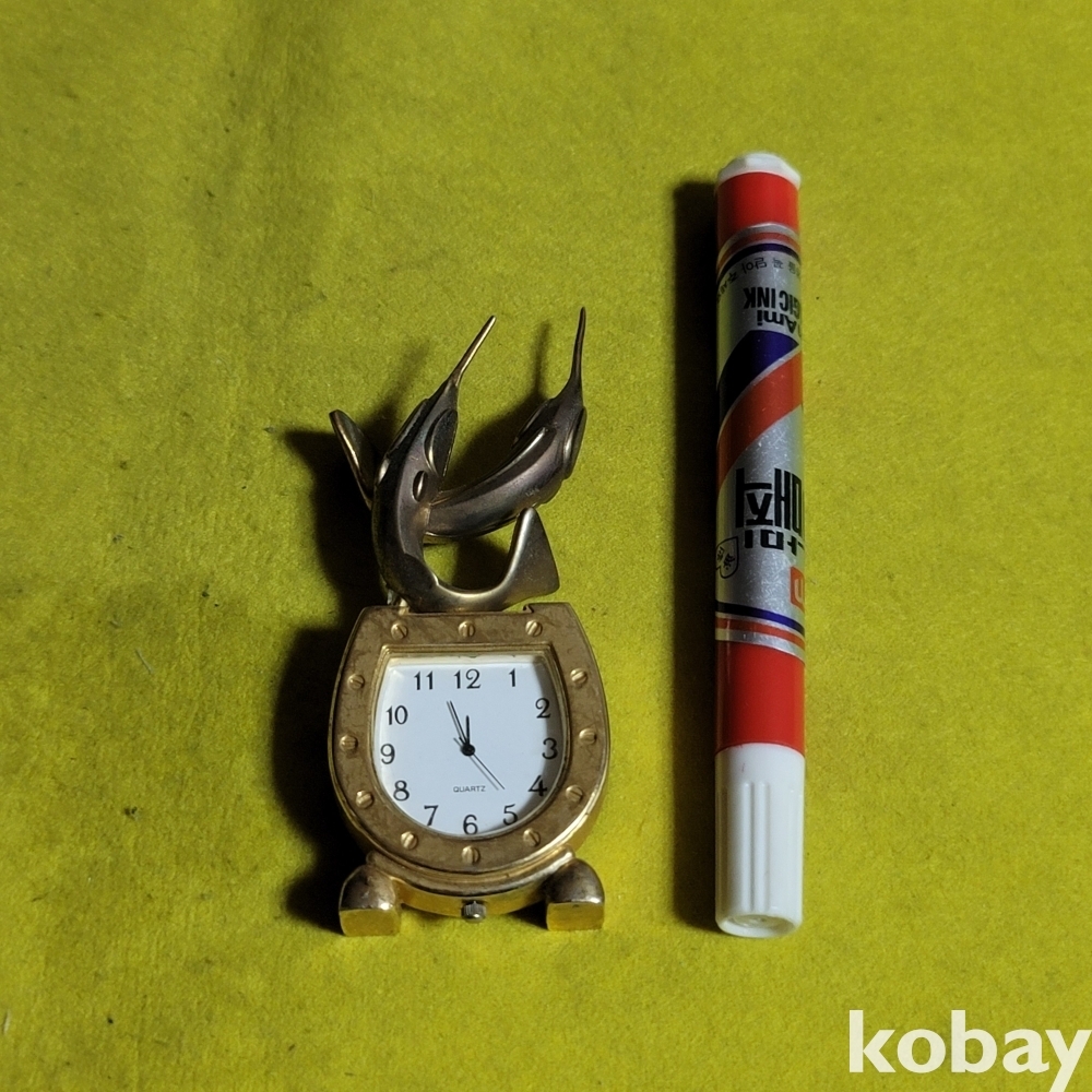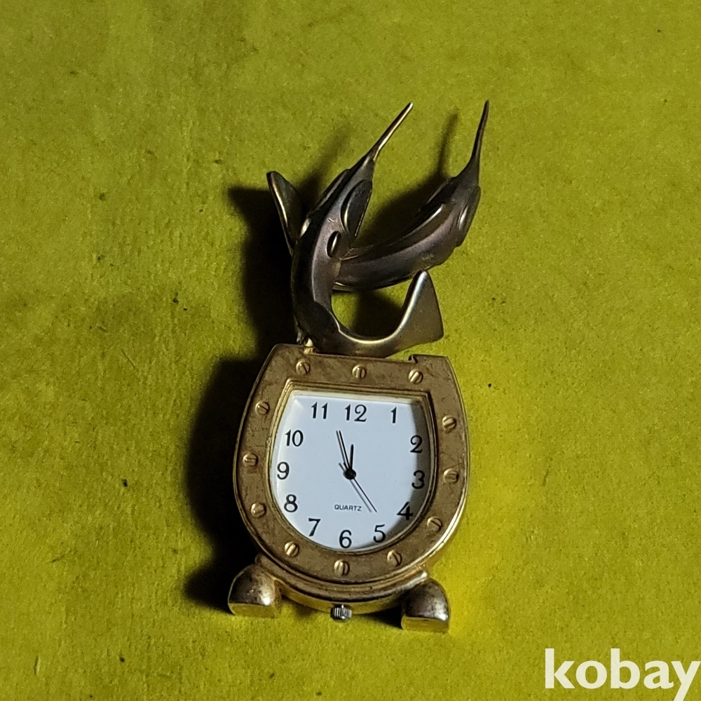 (((탁상시계))) 오래전 말발굽과 돌고래모습 금속 탁상시계 장식품