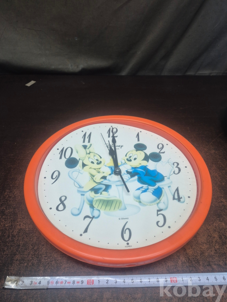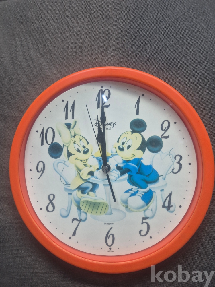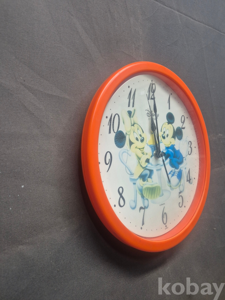 1980년대 디즈니 미키마우스 원형 건전지식 벽시계 재질 플라스틱에 미키마우스 프린팅
