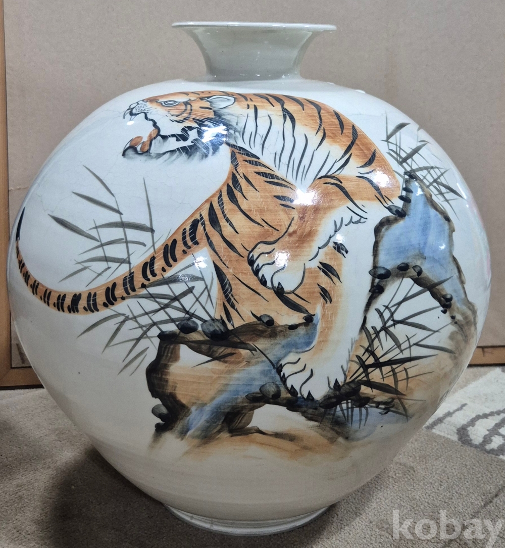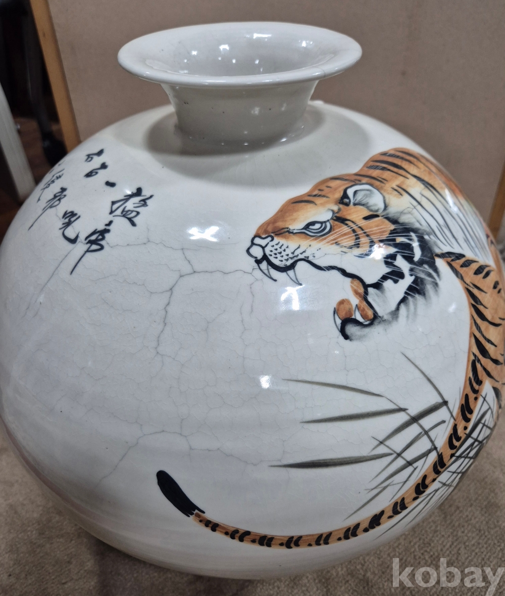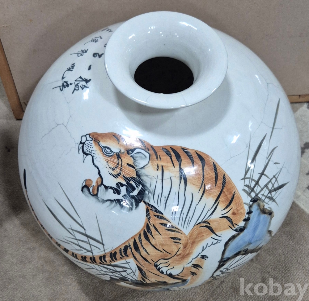 보기 드문 멋진 백자 대형 호랑이 도자기'이오니 작가 수결 및 낙관'등 두루 잘 참조하시고