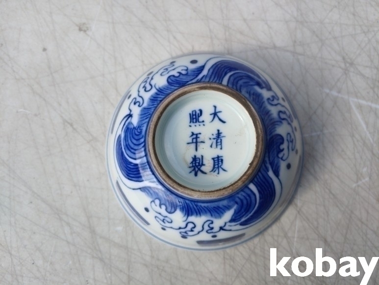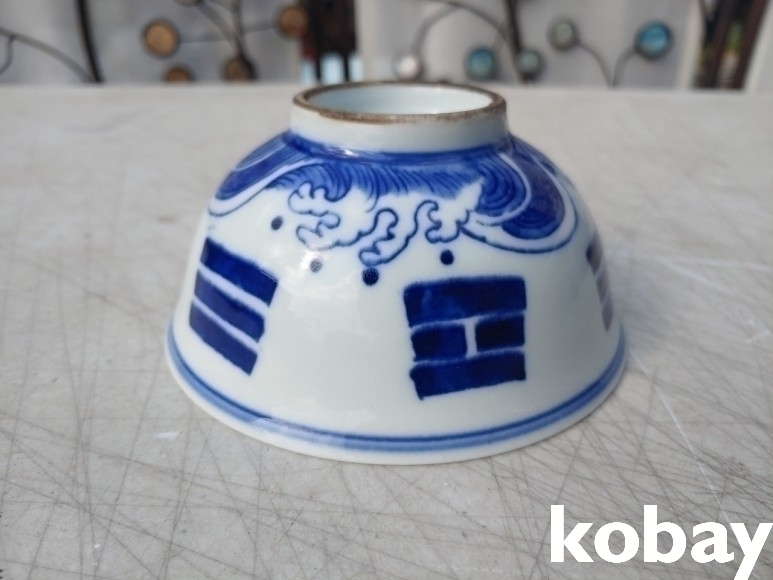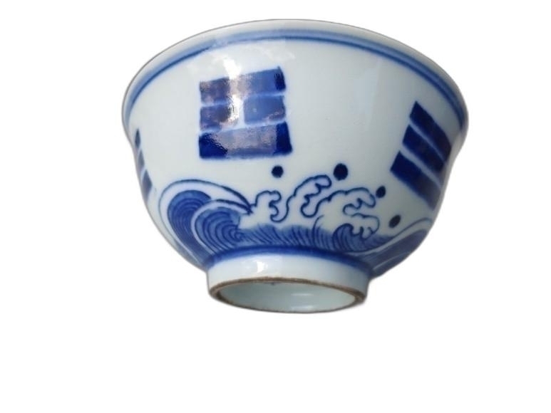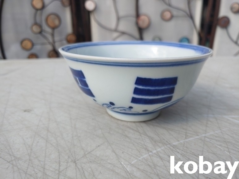 청화의 색감이 좋은 태극 4괘 문양 다완 입니다.